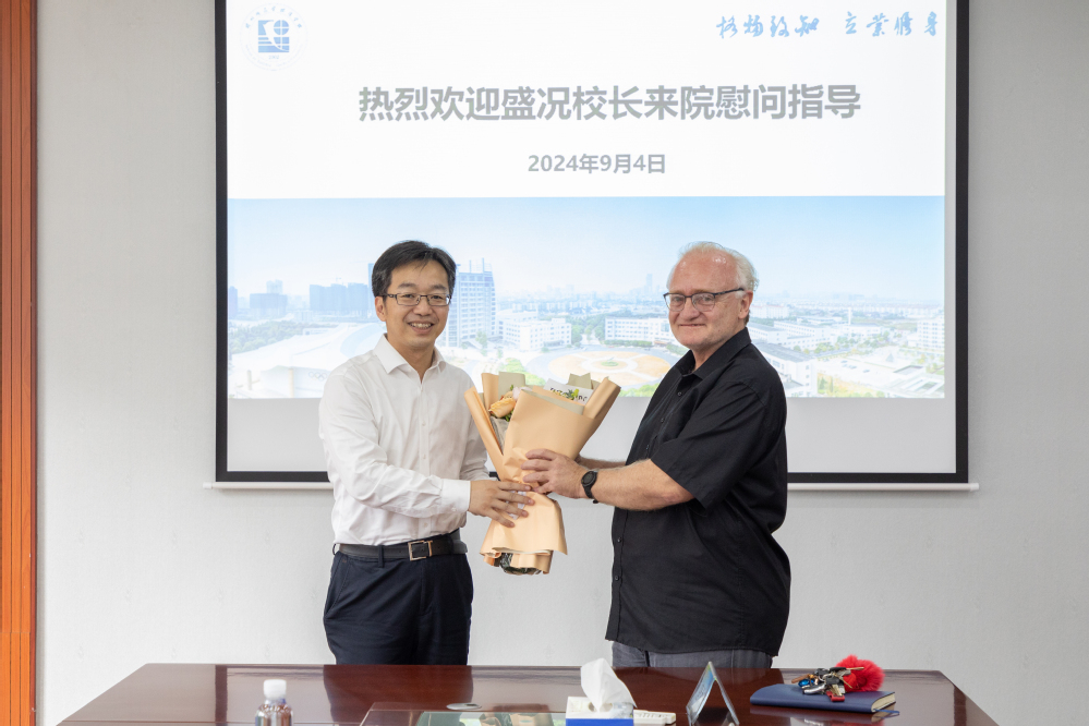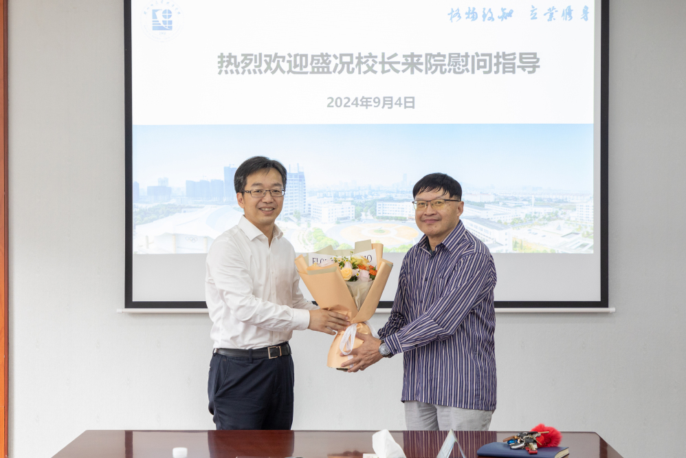 盛董事长向老师们送上鲜花并致以节日的问候,感谢老师们在教学、科研等方面为学校发展作出贡献。随后,盛董事长细致询问了两位老师在教学、科研、生活等方面的情况,认真听取他们对学校工作的意见和建议。他指出人才工作对学校的发展至关重要,希望在座老师能发挥“以才引才”作用,吸引更多高层次人才,特别是海外高层次人才加盟我司,扩大学校的国际影响力,并通过科研团队的形式,培养好年轻教师。