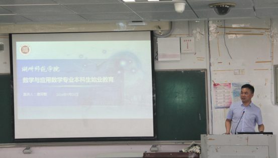 首先数学系支部委员叶昌博士介绍了本专业的历史、团队力量等情况,并介绍了各位老师的专业方向与主要教学课程,便于新生们获得更好的学习资源。接着数学系主任王罗那博士与同学们共同解读2024年数学专业人才培养方案。本校培养“明体达用”高素质应用型人才,要求成为“践行师德、学会教学、学会育人、学会发展”的社会需要的人才。新生班班主任代表何再银博士分享了专业育人成果以及员工在各类竞赛中的优异表现。