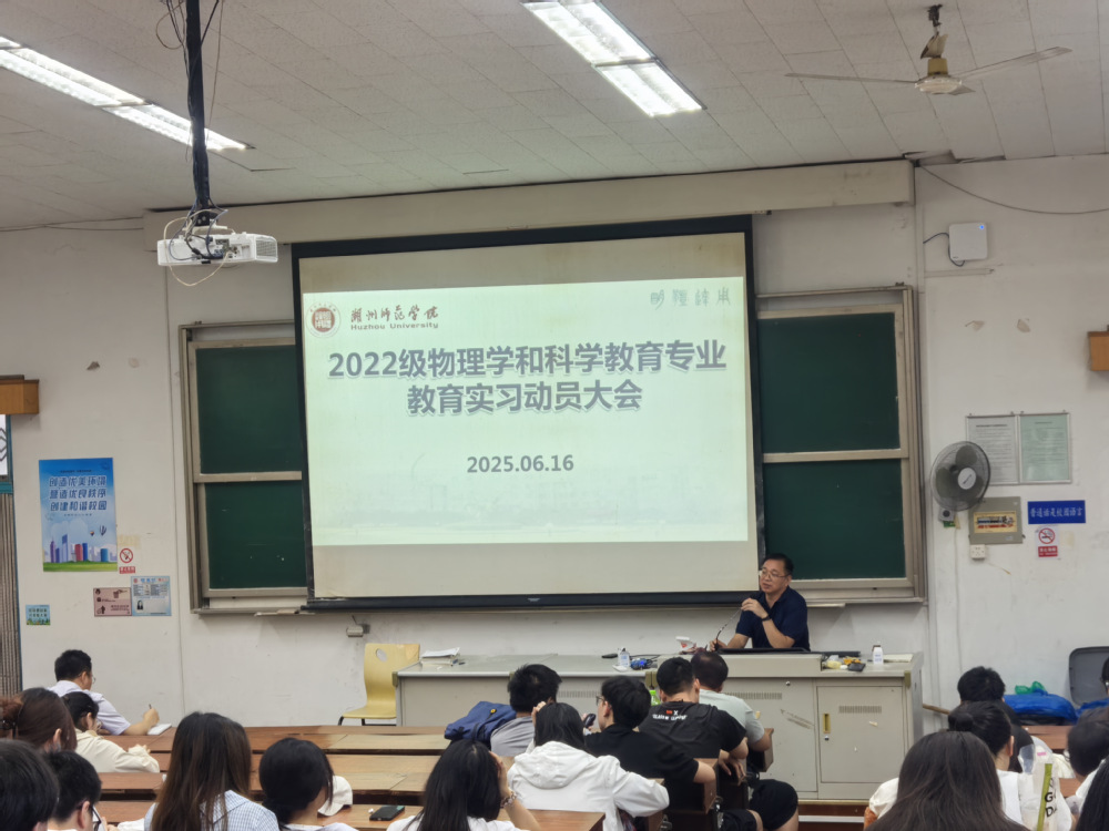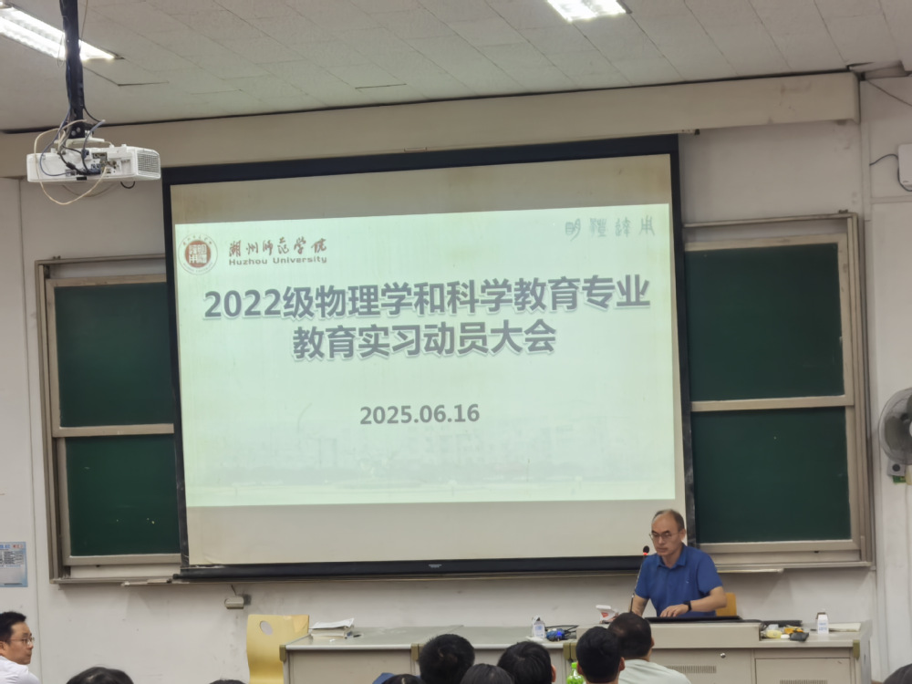 6月16日下午,2022级物理学(师范)和科学教育(师范)两专业教育实习动员大会在1号楼115教室召开。太阳集团tyc经理沈彩万、科学教育(师范)专业负责人黄文华、物理学(师范)专业执行负责人李鹏程、20220714、20220715、20220716、20220717班全体员工和部分教育实习带队教师参会,会议由物理系主任朱祥荣主持。