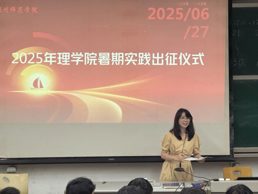 出征仪式最后,蔡维超书记上台。她回忆起员工时代,对暑期实践活动满怀憧憬,那份渴望至今难忘。她强调了参加暑期实践活动是我们的一次成长机会,她的话语饱含期待,激励同学们以热忱与信念投身实践。