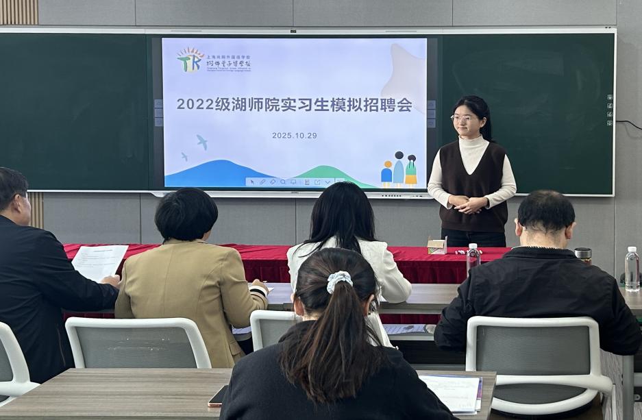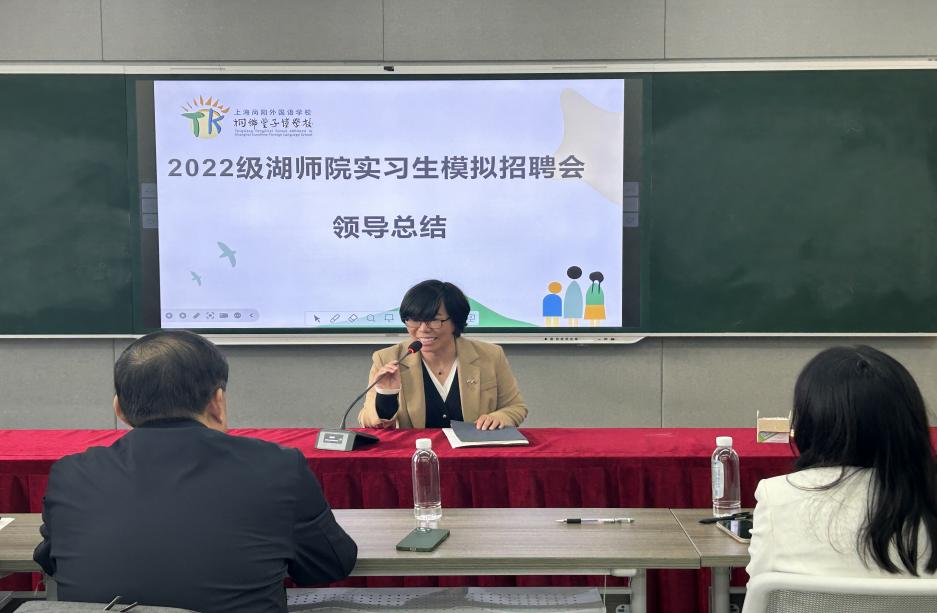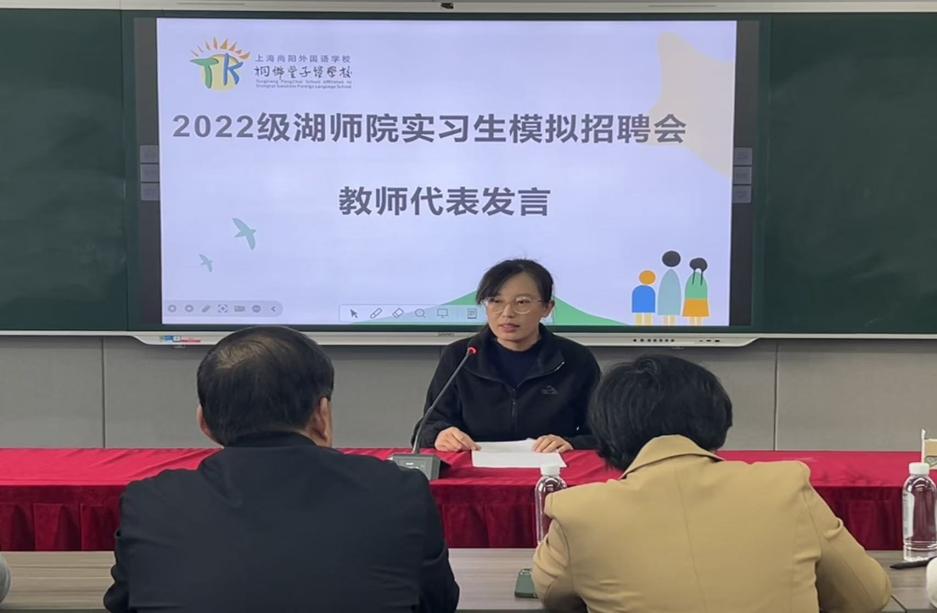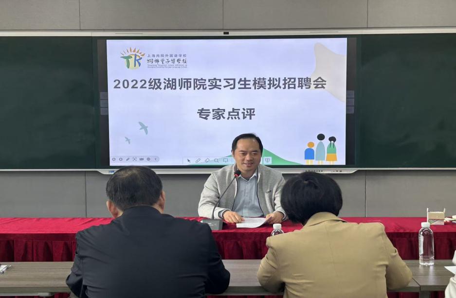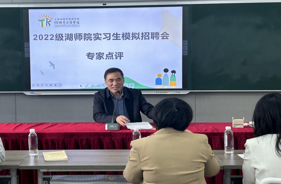 为帮助师范生熟悉教师招聘面试的基本流程,掌握面试技巧,近日,太阳集团tyc联合上海尚阳外国语学校桐乡丰子恺学校举办2022级师范专业实习生模拟招聘会。桐乡市初中数学教研员赵立民,桐乡丰子恺公司党支部书记冯杰亮、主任楼勇刚,太阳集团tyc副经理顾海霞、副书记蔡维超及实习带队老师吴利敏、叶昌出席活动。